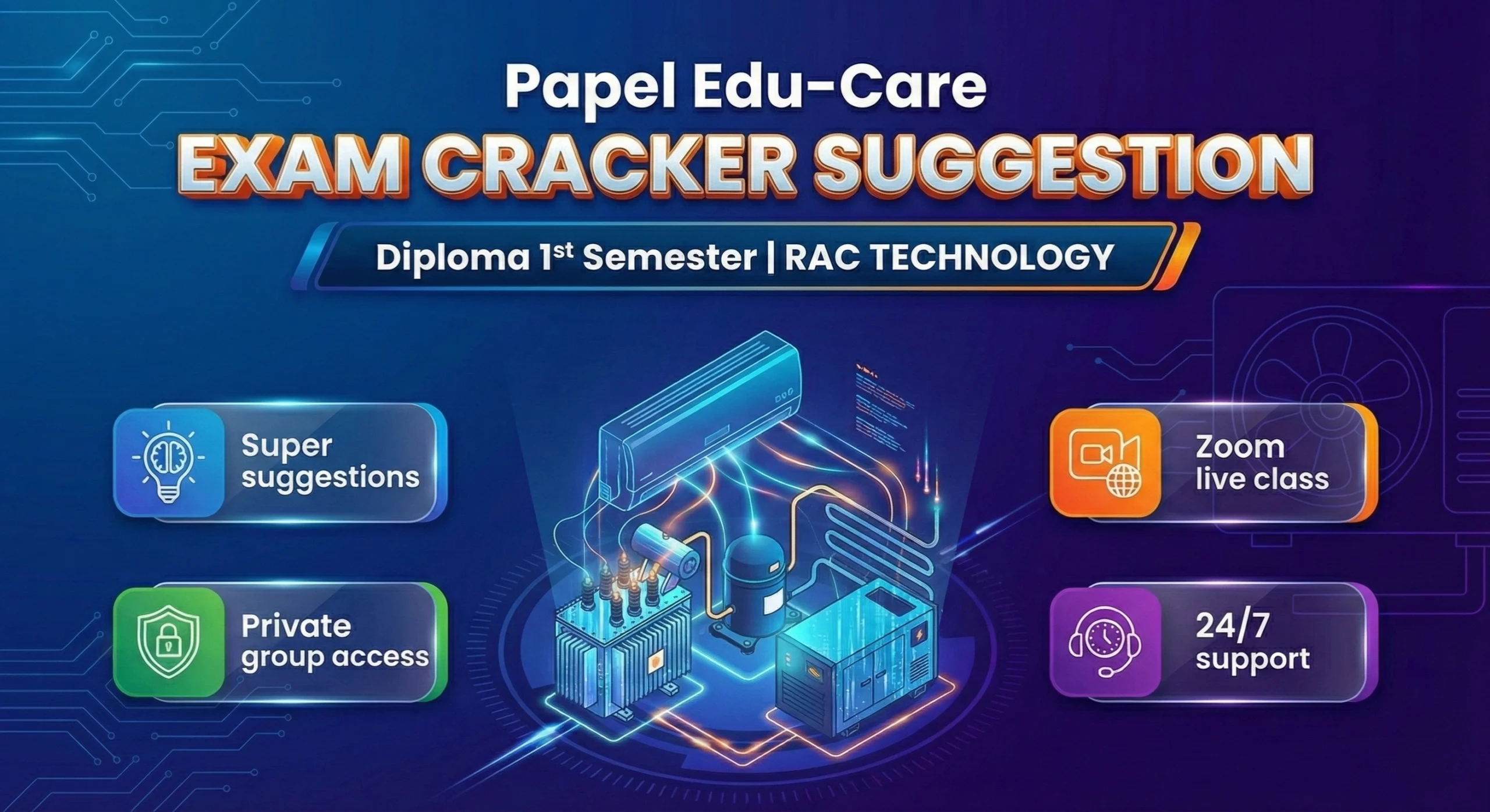 আরএসি টেকনোলজির কঠিন সাবজেক্টগুলো সহজ করে বুঝিয়ে দিতে এবং ফাইনাল এক্সামে নিশ্চিত সাফল্যের লক্ষ্যে Papel Edu-Care নিয়ে এসেছে বিশেষ “Exam Cracker Suggestion & Course”।